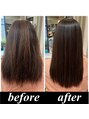 従来の縮毛矯正とは全く異なり弱酸性のままストレートに髪質改善する最新の縮毛矯正です。独自の研究によるサプリメントケアで髪の間充物質を補いながらかけるため固くならず柔らかいシルクのような手触りになります☆
