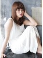 シースルーの前髪でレイヤーボブ。カラーは透明感のあるミルクティーベージュ。