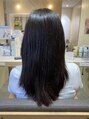 弱酸性縮毛矯正後2回目のヘアエステトリートメントの施術をさせて頂いたお客様です。弱酸性縮毛矯正の効果持続させるために髪の栄養補給をしっかりさせていただきました。