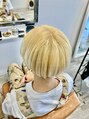 ブリーチを2回してホワイトベージュをオンカットは4mmのツーブロック※ブリーチのご予約はお電話で承ります。