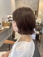 外ハネのあごラインボブに波ウェーブでアクセントをつけたスタイル。カラーはピンクバイオレットでツヤ感を出して。可愛いらしさのある動きのあるボブスタイルです♪