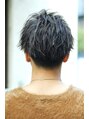 かきあげた前髪と、サイドのリバース感、ハネ感がカッコいい!襟足は刈り上げてスッキリ、サイドには隠し2ブロックを。MIXパーマでランダムな束感とボリューム感でスタイリングをより簡単に!