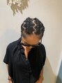 従来のカラー剤の9分の1のダメージで染める事が出来るHUEGLOSSであえて地毛より暗いブルーブラックに♪ホリスティックで髪質改善◎イベントや特別な日のお出かけに短時間でCOOLな編み込みアレンジ( ☆∀☆)