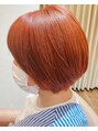 ブリーチ1回で作るオレンジブラウンカラーです。発色のいいエノグカラーで染めさせていただきました。髪の毛の状態によっては、1回のブリーチでは難しいこともございますので、一度ご相談下さい。