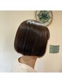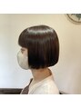お顔がすっきりみえる顎ラインのボブです。形は重ためですが質感調節をして毎日のスタイリングが楽になるようにしています。暖色系カラーでより艶やかに♪
