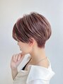 大人前下がりショート。頭の丸みが綺麗に見え、襟足の髪もやや短め、耳にかけれる、少し斜めに流せる前髪、女性らしさ残るオススメスタイル!ハイライトカラーで、透明感あるカラーになります。ワックスを揉み込むだけの、簡単スタイリングです。