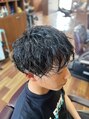 緩めのピンパーマスタイルで、サイドから襟足までブロックを入れたスタイルです。緩めのパーマなのでスタイリングも簡単です。