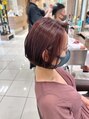 - ピンクブラウンにローライトを入れる事で立体感とツヤがでます。乾かすだけでまとまるようにカット