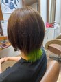 インナーカラーネオングリーンで染めてみました(^^)トップの御色は同色系の11レベルのマットです