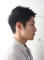2ブロックなしのリクルートベリーショート。サイド、襟足は優しく刈り上げ柔らかい印象に。前髪は流れの中で上げてアップバングスタイルにしました。ソフトモヒカンスタイル×デコ出しで爽やかさと男らしさをプラスしたビジネスマンおすすめのスタイルです。