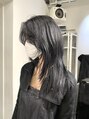1_カットはロングウルフ2_頭のフォルムを重視し 3_ブラントカットな毛先&ヘビーバング 4_カラーはイノセントカラーのブルーブラックで…マッシ..ュSTYLEに... 似合わせカットであなただけのSTANDARD_モードレトロ_MASH_STYLEを.