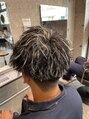 ホワイトの毛束がパーマを強調!ツイストスパイラルハイライト!