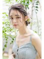 - ヘアセット ドライフラワー アップスタイル シニヨン ハーフアップ 結婚式 二次会 ヘアアレンジ