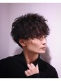 ニュアンスパーマセンターパート韓国マッシュ黒髪ツーブロック