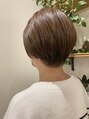 後頭部に丸みが出るように、しっかり段をいれています。乾かすだけでまとまるので、オイルやバームをつければ完成です!首の形が綺麗にみえる形で切っています◎夏の紫外線で明るくなってしまった髪もルフレカラーでつやつやに!