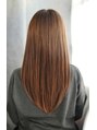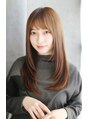 おろし流しバングのさらっと落ちるようなストレートスタイルです。顔まわりから入るレイヤーは毛先に動きをだし軽さを出してくれます。
