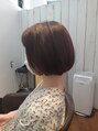 カットし、カラー、トリートメントしました。透明感のあるアッシュ系のカラーに、まとまりやすくボブベースにカットして、カラーとまとまりやすくするように、超音波を使用して、トリートメントしています。