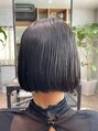 - カットカラー、縮毛矯正、オリーブアッシュ、ミニボブ