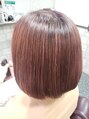 細かくハイライトを全頭に施し、その後にカラーリングしています!白髪と黒髪の境目をぼかしています!ハイライトだけだと明るすぎるので、オンカラーで今回は赤みのあるカラーをかぶせています!