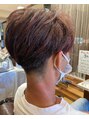 刈り上げスタイルです。レッドカラーでインパクトのあるスタイルです。
