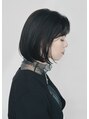 王道の内巻きボブにクールな印象をMIXしたスタイルです。特に前髪を上げて動かす事で額を見え、大人なアンニュイな印象を出します。カッコいいボブにしたい方は是非!!