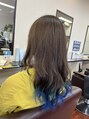毛先にポイントでブルーカラー^_^お客様に似合わせてカラーリングさせてもらってます!カラーを楽しんでもらいたいです(^^)艶髪 髪質改善 縮毛矯正 ハイライト 30代40代50代