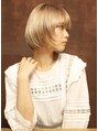 ベースは顎ラインのボブ。顔周りを短くして前上がりのラインで作り、前髪は目の上で作って小顔になるようにしています。カラーブリーチしてベースを明るくしてベージュの色味をかぶせて、ストレートスタイルの中にも柔らかさを感じる様にしています。