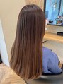明るめのやわらかさたっぷりのベージュカラーです。髪質改善トリートメントで艶々の髪に☆