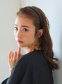 うぶ毛を活かしてカチューシャで前髪を上げました。顔まわりはゆるくほぐして、もみあげもおくれ毛に。25mmのアイロンでしっかり捻り巻きを毛先までした後ブラシでほぐしてツヤを出し、カチューシャを付けて顔まわりを摘んでほぐします。