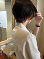 ショートの耳と襟足にチラッと見えるインナーカラーがポイント。オレンジベージュが可愛いです!