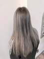 複数回全体ブリーチした状態から更にバレイヤージュ部分をブリーチ、ベースはダークグレーでコントラストをつけてます♪半年くらいかけながらベースを作っていきながらようやくたどり着けるカラーです☆福岡久留米