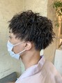 マッシュスタイルにツイストピンパーマスタイル!丸みがでない様に全体をピンで軽めのツイストを加える事でランダムな動きがでます!スタイリングもハーフウエットの状態からワックスを揉みこんで自然乾燥させるだけで立体感が出るのでスタイリングも簡単に!
