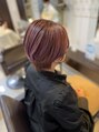 ブリーチ後に、イルミナカラーでうすいピンクバイオレット系のカラーを作っています。透明感がでて可愛いので、是非、試してください。