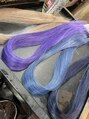 地毛と色系統を合わせて(今回はブルー系)、グラデーション風にデザインカラーをエクステで作りました☆