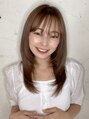 シースルーバングとストレートヘアでナチュラルな雰囲気に。全体ストレートアイロンで伸ばし、薄くオイルをつけて最後は艶出しスプレーで仕上げます。