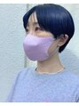 ダブルカラーで ネイビーブルーヘアちょい重めショート