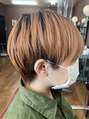 ショートボブから今回はバッサリショートカットにしました!染めてから2ヶ月経つので黒い所が出てしまうのですが、逆にシャドウルーツっぽく見えるように切りました!