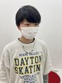耳にかからない短さのマッシュショート。首元は刈り上げてすっきりと。丸みある感じが女性らしく、刈り上げでボーイッシュに寄せてます。前髪は眉が隠れる長さでおさえめにして重たさを残してます。