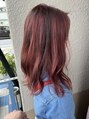 元々ハイライトの履歴がありその上からレッド系のカラーを入れています。ハイライト部分は色がしっかり出てベースの部分は暗めの色になっています。