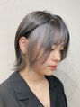 大人っぽいモードなインナーカラーで、全体的には暗めのグレーカラー。スタイルは肩上のボブで外ハネにセットしています。