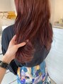 ブリーチを使わずにつくるワインレッド系のブラウンカラー☆暖色系のカラーはつや感が出て見えやすいのでおすすめです^^