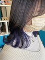 ミディアムヘアのインナーカラーで垢抜けスタイルに。トップとインナーを同色にして艶感アップに。