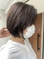 プラチナシルバーで作る寒色ダークブラウン・定番人気のラインミニボブは軽めの仕上がりで軽やかさが出るようにしています♪