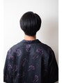 黒髪が引き立つパートスタイル。ツーブロックでサイドの耳周りはすっきりと。
