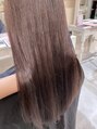 艶がしっかり出て色持ちも良いピンクブラウンカラーです!まとまりを良くするために基本はすいたりせず、柔らかな毛先はカットで表現します。
