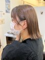 人気のぱつんとボブスタイルです!スタイリングは外ハネで、オイルをつけました!ギリギリ結ぶこともできるスタイルなので、楽ちんです!カラーはベージュで柔らかさを出しました*ハイライト/ベージュカラー/ミニボブ/20代30代40代50代/神楽坂/髪質改善/白髪染め