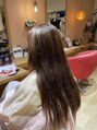 かなりのハイダメージ、ロングの髪の毛をバッサリとカットさせてもらいました♪ハイライトは以前入れていたものをそのまま使わせてもらってます!リペアカラーとクイックトリートメントだけでこの艶感です♪