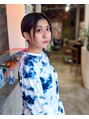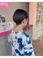 カットはサイドとバックを刈り上げてセンターパートの前下がりのショートスタイルに。色味は刈り上げショートに似合うクールなシルバーブラウンに。暗いトーンですが、光に当たるとブリーチカラーならではの透け感が出て、柔らかさがプラスされます。