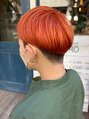 大胆に刈り上げを入れたマッシュベリーショート。ハイブリーチをトップの部分に入れてマンダリンオレンジのカラーをかぶせました!