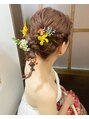 生花をふんだんに散りばめたたまねぎヘアです